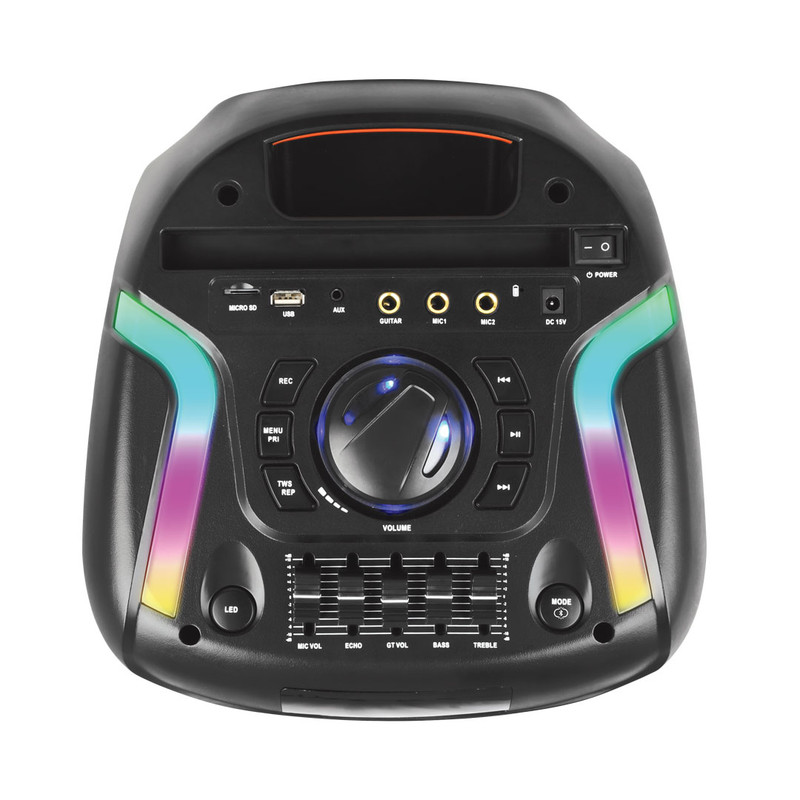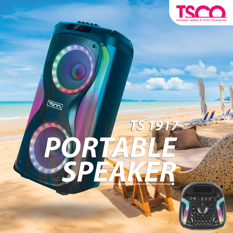 وزن این اسپیکر 8 کیلوگرم بوده و با توجه بلوتوثی بودن آن مناسب به نظر میرسد. این اسپیکر بلوتوثی تا فاصله 10 متری قابلیت اتصال به دستگاه مورد نظر شما را داشته و شما میتوانید از طریق درگاه USB اسپیکر را شارژ کنید. در طراحی این اسپیکر در بخش بالایی دستگاه بخش تنظیمات اسپیکر قرار گرفته که شامل ورودی میکروفن، پورت AUX، یک درگاه USB و درگاه TF هست تا شما بتوانید به طرق مختلف موسیقی دلخواه خود را گوش دهید. در کنار اینها 4 دکمه برای پخش آهنگ و تغییر حالت پخش و همچنین عقب و جلو زدن آهنگ روی این اسپیکر تعبیه شده است. یک بخشی نیز برای زیاد و کم کردن صدا در نظر گرفته شده است. دکمهای جهت تغییر حالات نورپردازی روی اسپیکر TS 1917 قرار گرفته که جذابیت خاصی برای کاربر ایجاد میکند. با گرفتن دکمه مود بعد از 3 ثانیه نگه داشتن دکمه میتوانید از قطع شدن بلوتوث مطمئن شوید. شما از اسپیکر TS 1917 امکاناتی چون ورودی گیتار، ضبط صدا، کارائوکه، اکولایزر، اولویت میکروفون و اکو را دریافت میکنید. با استفاده از کلید کنترل تعبیه شده روی دستگاه میتوانید حالتهای مختلف ( میکروفون، گیتار، اکو، تریبل و بیس) را تنظیم کنید.