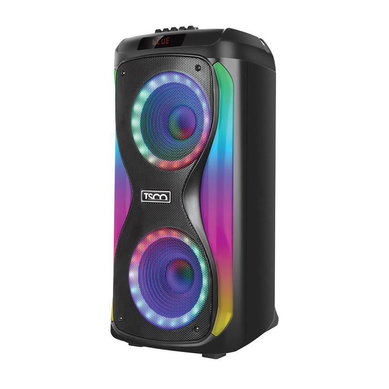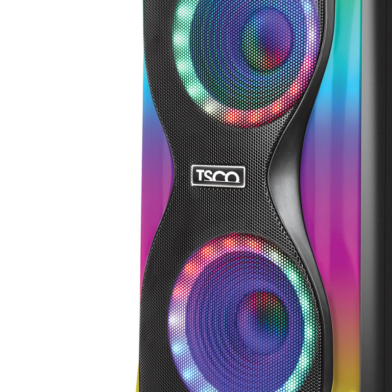 در بخش طراحی ظاهری این اسپیکر یکی از نکاتی که خیلی جلب توجه میکند نورپردازی RGB و جذاب آن است. با این طراحی شما میتوانید از فضاسازی آن لذت برده و حس و حال بهتری به اتاق خود ببخشید. اسپیکر بلوتوثی تسکو مدل 1917TS از یک پورت USB، 2ورودی میکروفن و درگاه AUX پشتیبانی میکند. این محصول از لحاظ ظاهری بسیار جذاب و بروز بوده و به رنگ مشکی به بازار عرضه شده است. یکی از روشهای اتصال جالب برای این دستگاه TWS است که با استفاده از این قابلیت میتوانید دو اسپیکر را به صورت همزمان به دستگاه متصل کنید تا امکان صدای کانال چپ و راست را با هم فراهم کنید. همچنین استفاده از TF Card یا micro SD نیز برای این دستگاه فراهم است. شما برای اتصال به رادیو نیز محدودیتی نخواهید داشت. ابعاد فیزیکی 1917 برابر 282x292x600 میلیمتر بوده که برای یک اسپیکر بلوتوثی با این حجم از صدا مناسب است.