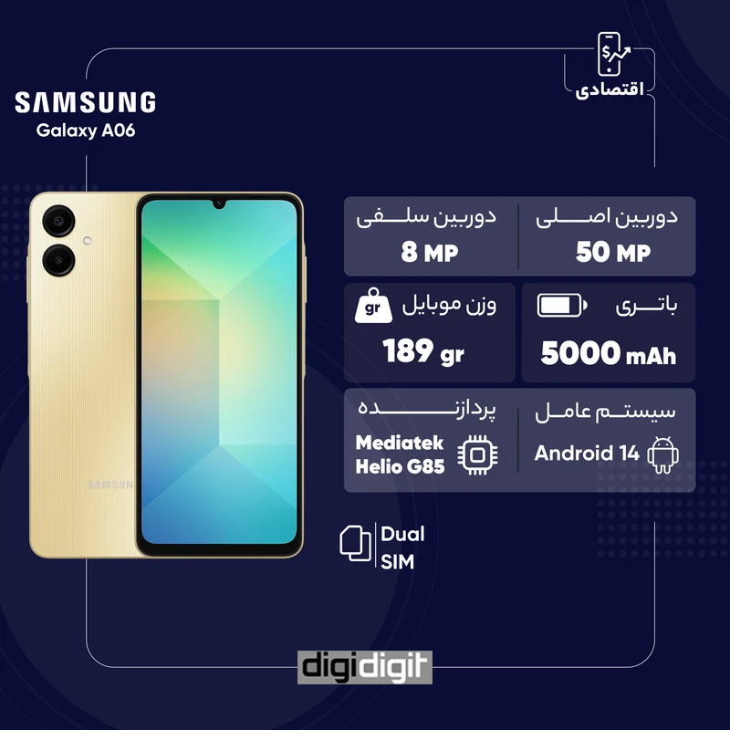 Samsung Galaxy A06 یک گوشی اقتصادی مناسب برای کاربرانی است که به دنبال یک دستگاه با صفحهنمایش بزرگ، باتری قدرتمند، طراحی مدرن و رابط کاربری بهروز هستند. عملکرد پردازشی آن برای کارهای روزمره کاملاً مناسب است، اما برای اجرای بازیهای سنگین ممکن است محدودیتهایی داشته باشد. در مجموع، اگر به دنبال یک گوشی مقرونبهصرفه از برند سامسونگ هستید که بتواند نیازهای اساسی شما را بهخوبی برآورده کند، Galaxy A06 میتواند گزینهای ایدهآل برای شما باشد.