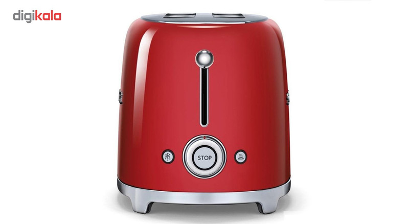 توستر اسمگ مدل TSF02 طراحی بسیار خاص و زیبایی دارد که یادآور وسایل خانگی قدیمی است. این مدل از سری 50s Style اسمگ است که با الگوبرداری از سبک طراحی دههی 60 و اوج دوران مدرنیته طراحی شدهاند. از همین رو در طراحی آنها از خطهای صاف و زاویههای تند استفاده نشده است. این سبک طراحی باعث میشود دستگاه حس خشک و صنعتی یک ماشین را نداشته باشد و بیشتر دکوراسیون آشپزخانه را گرم و صمیمی کند. این توستر دارای ۴ جای نان است و از این رو برای خانوادهها بسیار مناسب است. همانطور که از نام این دستگاه پیداست، کار اصلی آن تست کردن نان است. باوجود قابلیت تنظیم حرارت، کاربر میتواند نان تست خود را به میزان مورد علاقهی خود تست کند تا کاملا ترد، نیمه ترد یا نرم باشد. البته برای دستگاه دکمهی توقف هم در نظر گرفته شده تا کاربر بتواند فرایند تست شدن را متوقف کردن و میزان تردی نان را بسنجد. البته که توستر غیر از کار اصلی خود، برای یخ زدایی نان هم کاربرد دارد. شاید این مفیدترین کاربرد توستر باشد چون مشکل گرم کردن نان با مایکروفر یا روی گاز را حل میکند. وقتی نان را روی اجاق گاز گرم میکنیم احتمال سوختن آن بسیار زیاد است. همچنین وقتی نان را با مایکروفر گرم میکنیم تنها برای چند دقیقه حالت تازگی دارد و پس از آن کاملا خشک و سفت میشود. اما توستور با حرارت طبیعی، متداوم و نه چندان زیاد نان را یخزدایی و سپس گرم میکند. به این صورت نان طوری گرم میشود که انگار به تازگی از تنور بیرون آمده است. برای این که خورده نان داخل توستر جمع نشود و تمیز کردنش کاربر را دچار دردسر کند، یک سینی کشویی زیر دستگاه کار گذاشته شده که خوردههای نان روی آن میریزد و کاربر به سادگی آن را بیرون میکشد و تمیز میکند.