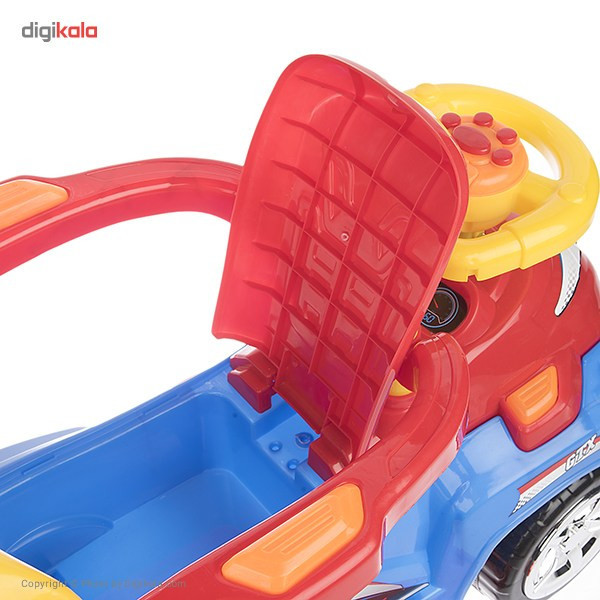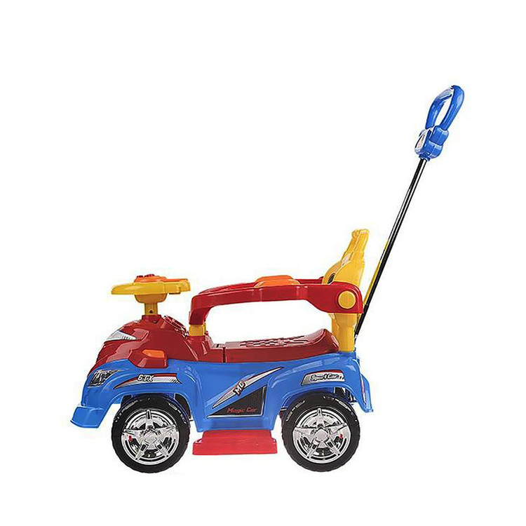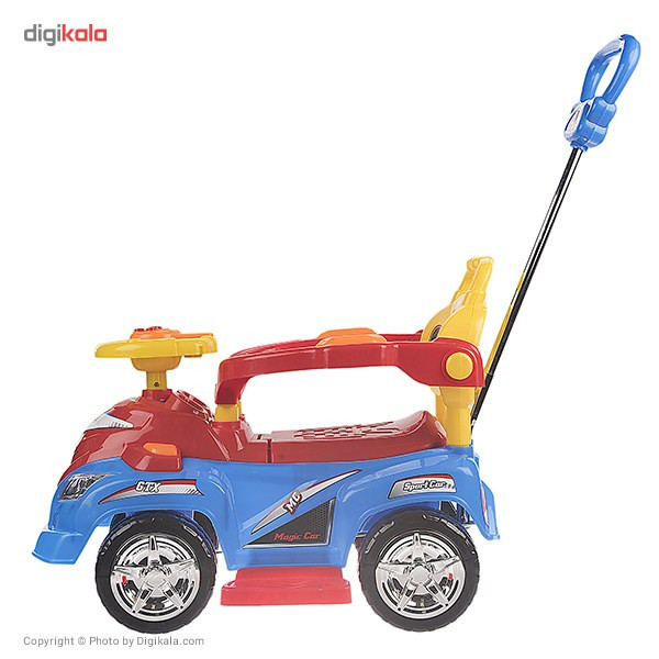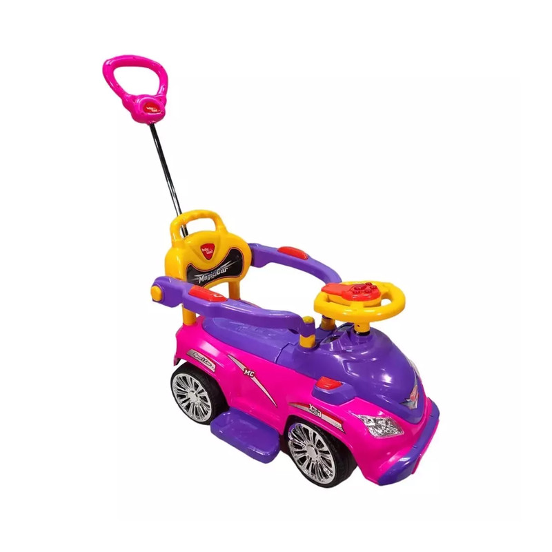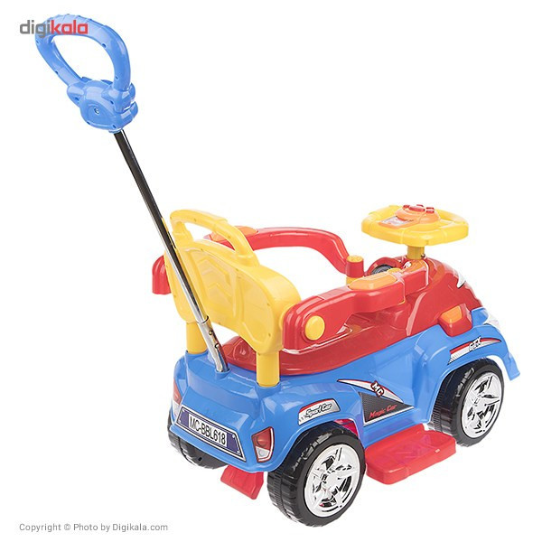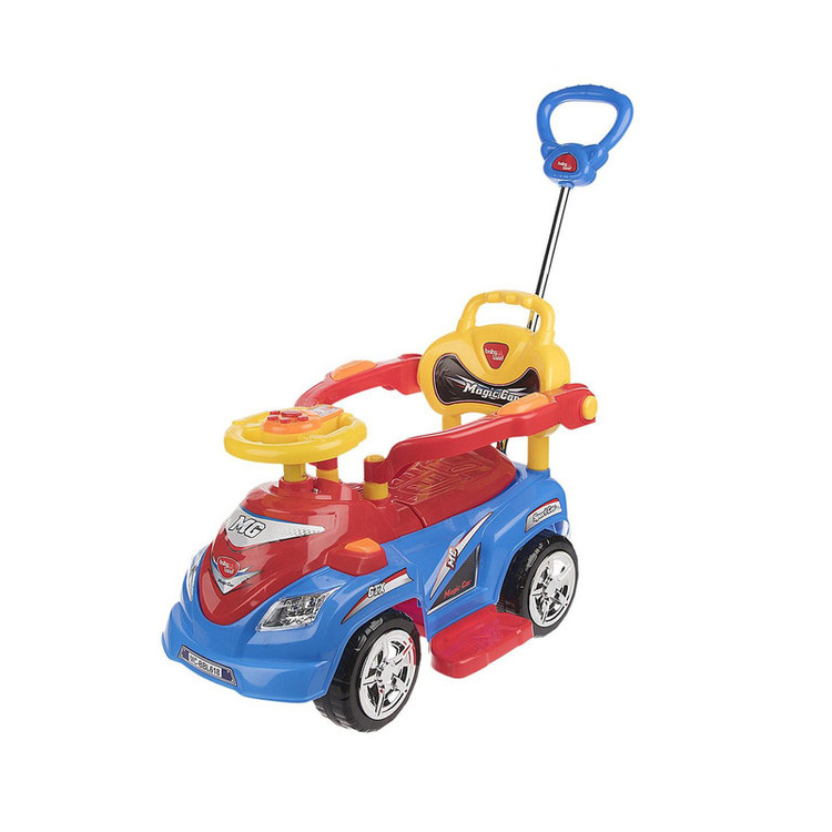ماشین بازی «بیبی لند» مدل «Magic Car» با طول 72 سانتیمتر از پلاستیک مقاوم ساخته شده است. این جنس، حداکثر 20 کیلوگرم وزن را تحمل میکند و با وجود این ظرفیت، برای کودکان 2 تا 5 سال بسیار مناسب خواهد بود. وجود یک صفحهی موزیکال روی فرمان از دیگر ویژگیهای این ماشین سواری بوده که برای کودکان بسیار جذاب است. کودکان شیفتهی ماشینبازی هستند. اگر برای سرگرمی آنها از یک ماشین بازی متناسب با دنیای کودکانهشان استفاده شود، ساعتها گرم بازی میشوند. مدل «Magic Car» یکی از ایدئالهای کودک بهعنوان یک ماشین بازی است. این مدل با فرمانی شبیه یک ماشین حقیقی، این حسوحال را در کودک ایجاد میکند که در حال سواری با یک ماشین واقعی است. ماشین بازی Magic Car در یک بستهبندی به ابعاد 39/5×46×74 سانتیمتر عرضه شده است. این ماشین بازی، چهار چرخ پلاستیکی دارد. برای ایجاد حس سواریگرفتن از ماشین واقعی، هدایت آن با یک فرمان انجام میشود. این شبیهسازی، ارتباط کودک با ماشین را حین بازی بیشتر جلوه میدهد. روی فرمان، یک صفحهی موزیکال با قابلیت پخش صدای بوق و چهار دکمه جهت پخش ملودی کودکانه وجود دارد. برای کنترل ماشین بازی توسط والدین از اهرم هدایت فرمان استفاده شده و میتوان بر سرعت و جهت حرکت کنترل داشت؛ همچنین صندلی دارای محافظ بوده و برای خردسالان مناسب است. باید در سطحهای ناهموار، کودک را بهآرامی کنترل کنید و حرکت دهید؛ چون به دلیل نداشتن سیستم کمکفنر، ضربات ناشی از سطوح ناهموار به کودک وارد میشود. ناگفته نماند این ماشین فاقد سایبان است؛ اما زیر صندلی یک صندوق به ابعاد 10 × 18 × 25 سانتیمتر وجود دارد. چرخهای پهن و پلاستیکی ماشین سبب میشود در سطوح نرم هم حرکت کند و قرارداشتن مرکز ثقل روی چرخهای عقب باعث میشود هدایت و کنترل ماشین توسط چرخهای جلو راحتتر انجام شود. کودکان همواره به دنبال الگو قراردادن بزرگترهای خود هستند و ماشینبازی یک الگوبرداری از دنیای بزرگترهاست که همیشه برایشان خوشایند بوده است.