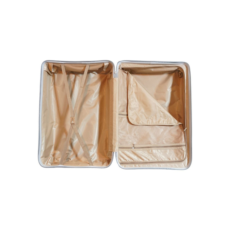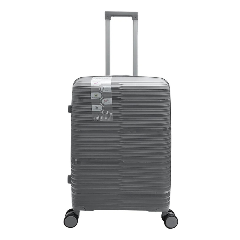 بدنه این چمدان از مرغوب ترین پلی پروپیلن با ضخامت بالا ساخته شده است که کاملا انعطاف پذیر، سبک و 100% نشکن میباشد. آستر داخلی آن از ساتن ضخیم می باشد، همانطور که پیداست این چمدان دارای چهارچرخِ دوبل بی صدا و 360 درجه قابل چرخش بسیار روان می باشد که البته ضد ضربه نیز میباشند. دسته تراولی این محصول فلزی می باشد. این چمدان دارای زیپ اصلی سایزِ 10 دوبل و ضد سرقت میباشد و بسیار مقاوم است. قفل TSA تعبیه شده روی این محصول امکان سفری ایمن را به شما می دهد. داخل چمدان یک جیب زیپدار کوچک وجود دارد که میتواند جای مناسبی برای وسایل گرانبها و مهم باشد و همچنین فضای مخصوص لباس زیر و همچنین فضای عایق مخصوص لباسهای خیس نیز دارد. بندهایی هم داخل محفظهی چمدان قرار دارد که بعد از قراردادن وسایل در داخل چمدان، میتوان برای جلوگیری از تکانخوردن وسایل، از آنها بهره برد. همانطور که میدانیم دسته چمدان یکی از قسمت های آسیب پذیر به هنگام پرت کردن چمدان ها در حمل هوایی میباشد که به واسطه طراحی خاص دسته ( مطابق تصاویر ) هنگامی که کاملاٌ داخل باشد به هیچ عنوان امکان شکستن و آسیب دیدن ندارد.