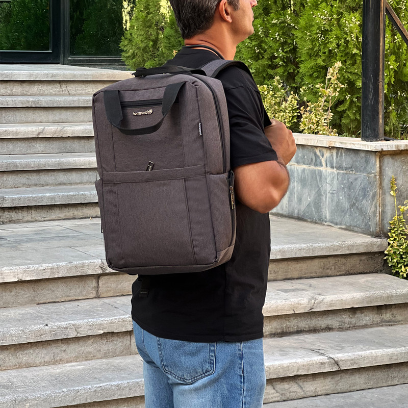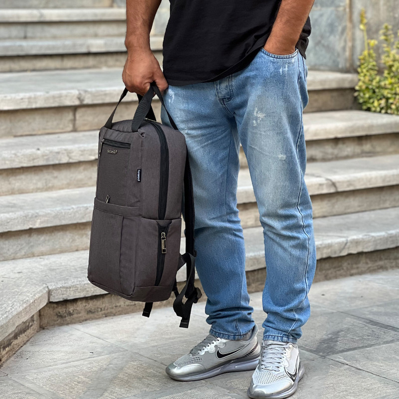 دارای دو بند کولی همراه با پد تهویه هوای سر تا سری جهت حمل کوله به صورت کولی دارای یک دسته از جنس نوار الگانس ضخیم جهت حمل به صورت دستی