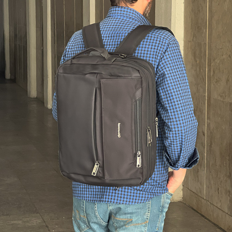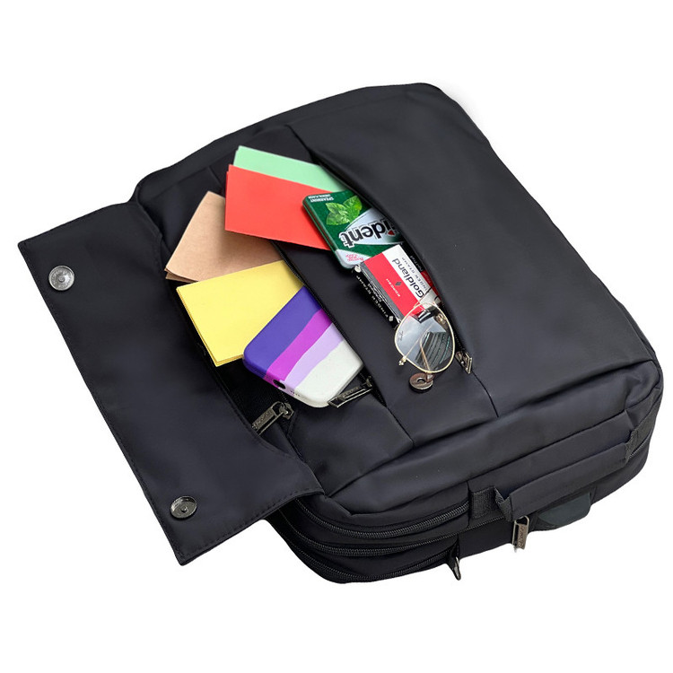 جیب بیرونی , جیب داخلی , دارای یک محفظه اصلی , محفظه نگهداری اسناد , محفظه نگهداری لپتاپ , محفظه افزایشدهنده حجم