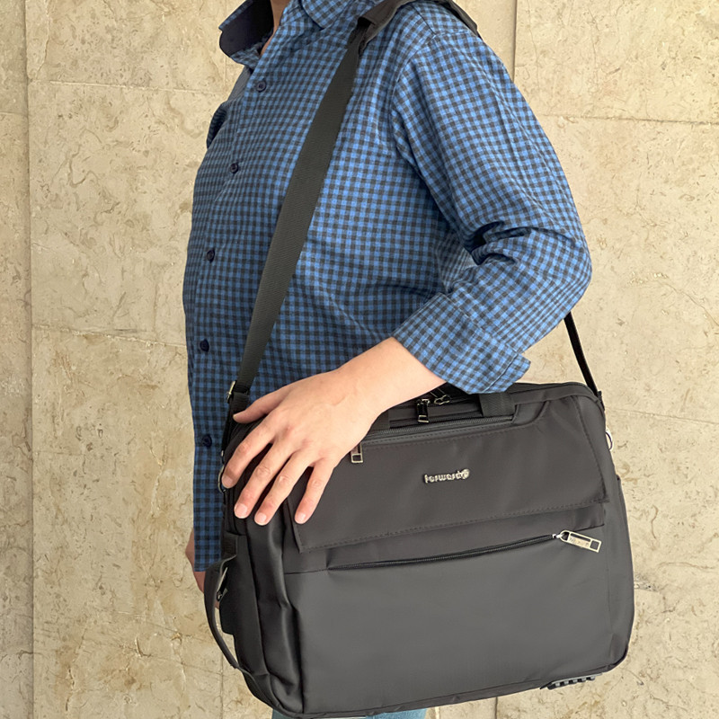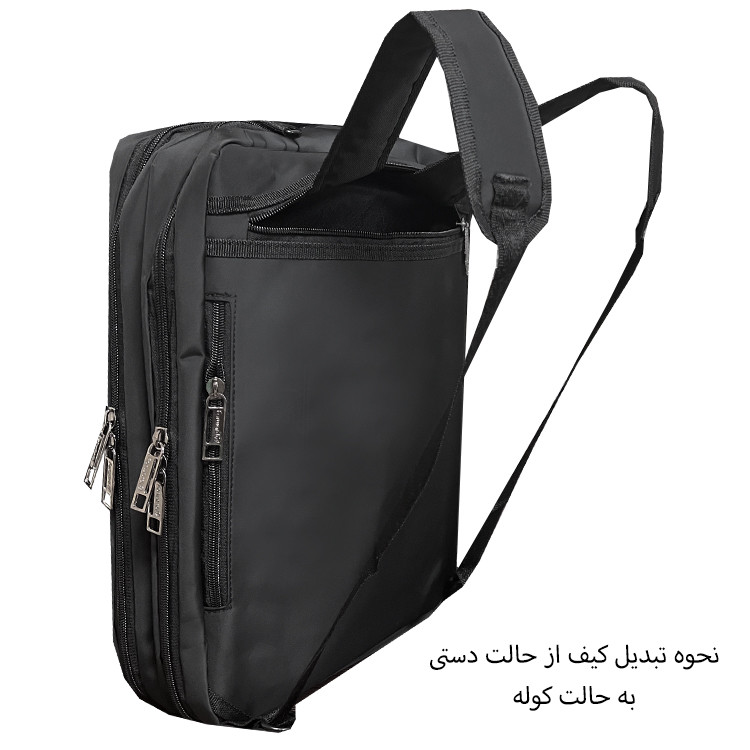 جیب بیرونی , جیب داخلی , دارای یک محفظه اصلی , محفظه نگهداری اسناد , محفظه نگهداری لپتاپ , محفظه افزایشدهنده حجم