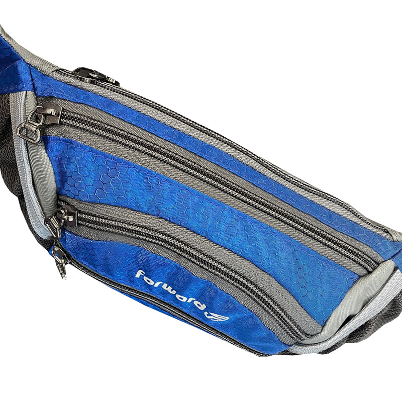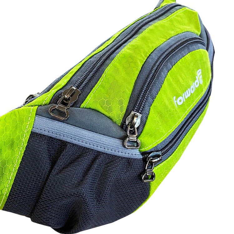 دارای یک زیپ مخفی در قسمت پشتی کیف کمری دارای 3 زیپ بزرگ در قسمت جلویی کیف کمری دارای دو جیب توری کش دار جهت قرار دادن وسایل و بطری نوشیدنی