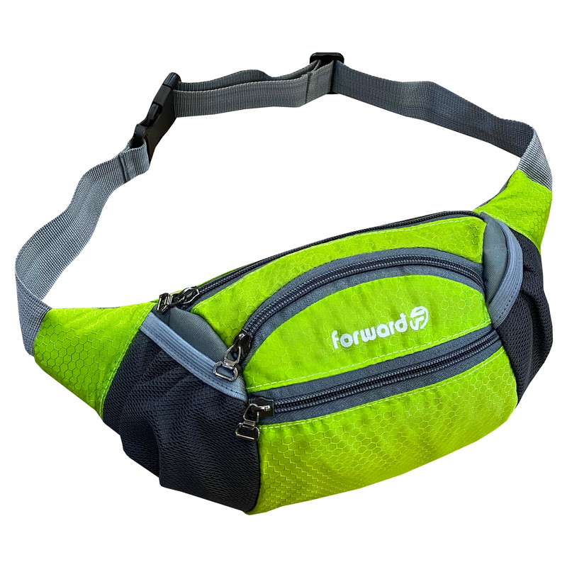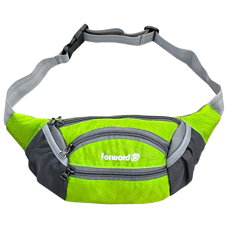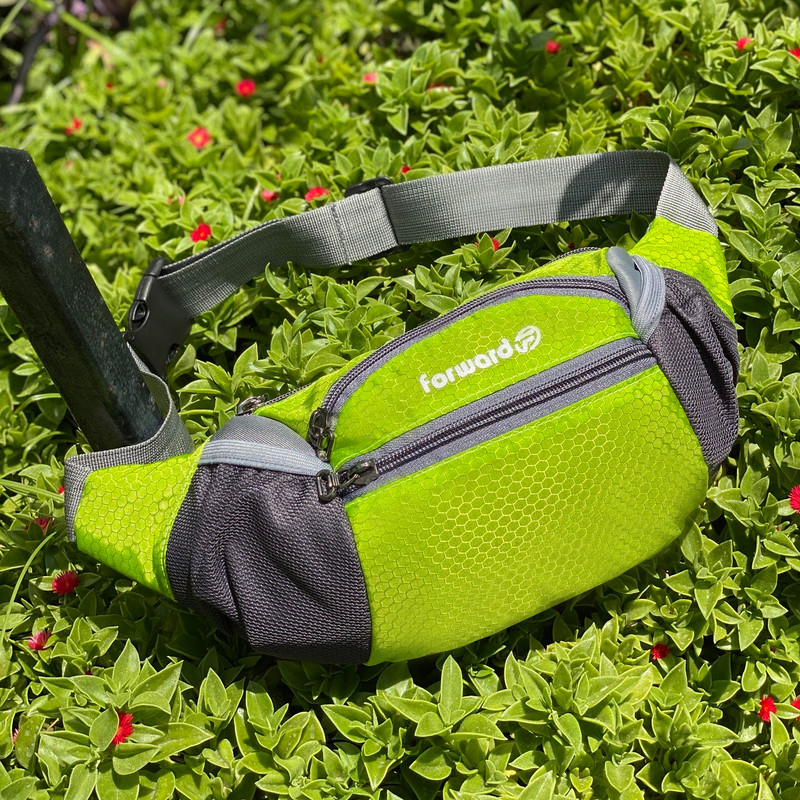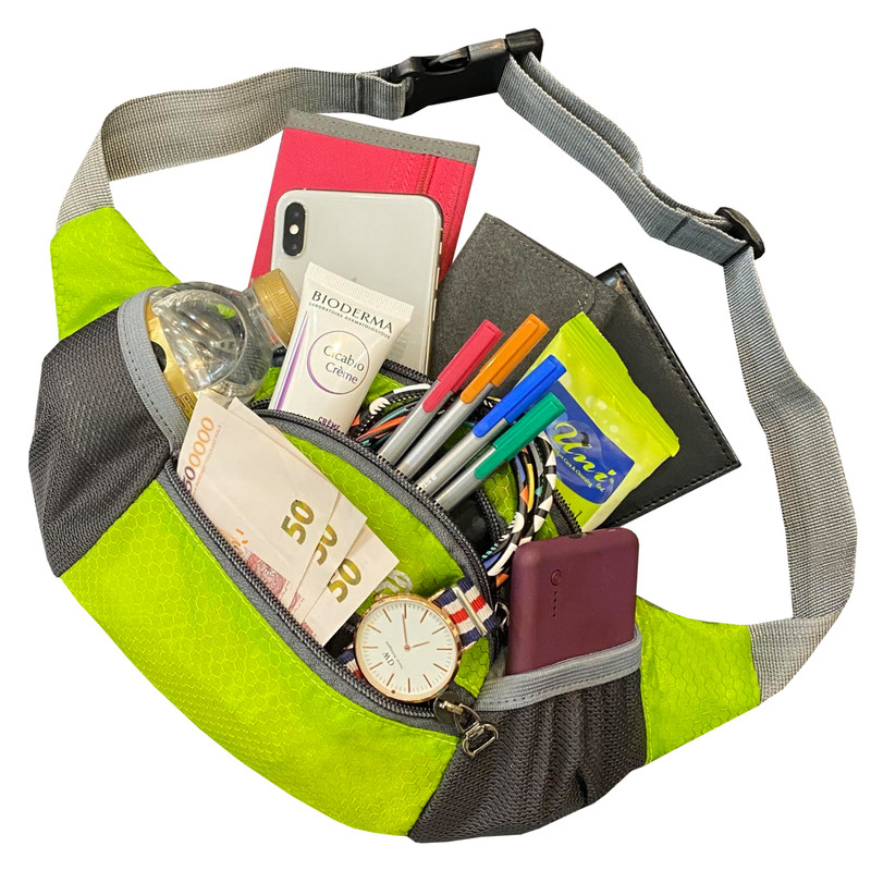 دارای یک زیپ مخفی در قسمت پشتی کیف کمری دارای 3 زیپ بزرگ در قسمت جلویی کیف کمری دارای دو جیب توری کش دار جهت قرار دادن وسایل و بطری نوشیدنی