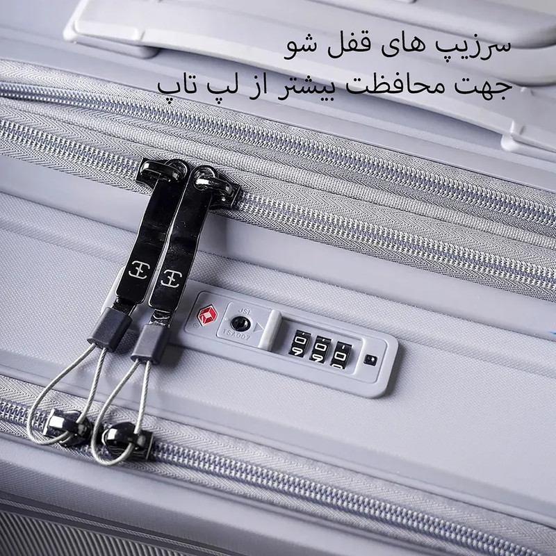 قفل 3 رمز TSA تعبیه شده در این چمدان، امنیت وسایل شما را در طول سفر تضمین میکند.