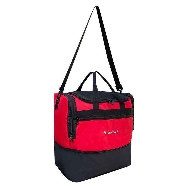 دارای یک بند بلند قابل تنظیم و قابل جدا شدن جهت حمل به صورت دوشی دارای ابر و آستر داخلی در تمامی قسمت های ساک دارای 5 عدد پایه استوک در قسمت کف ساک سفری جهت افزایش ایستایی و مقاومت ساک دارای جنس بدنه ضد آب و قابل شست و شو