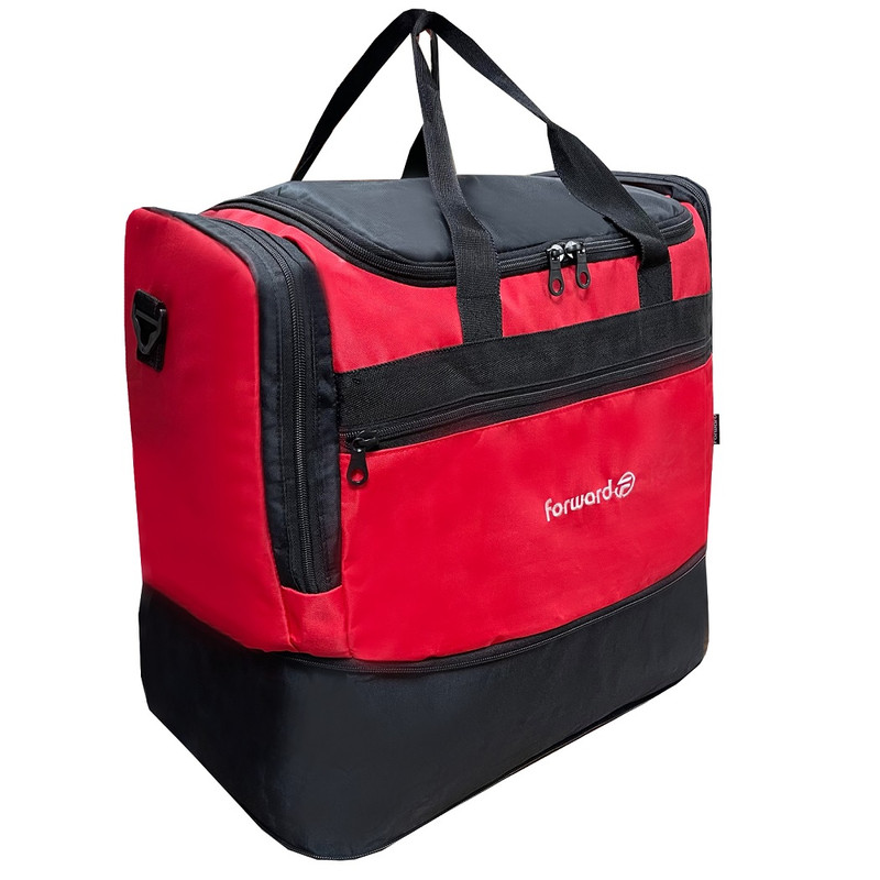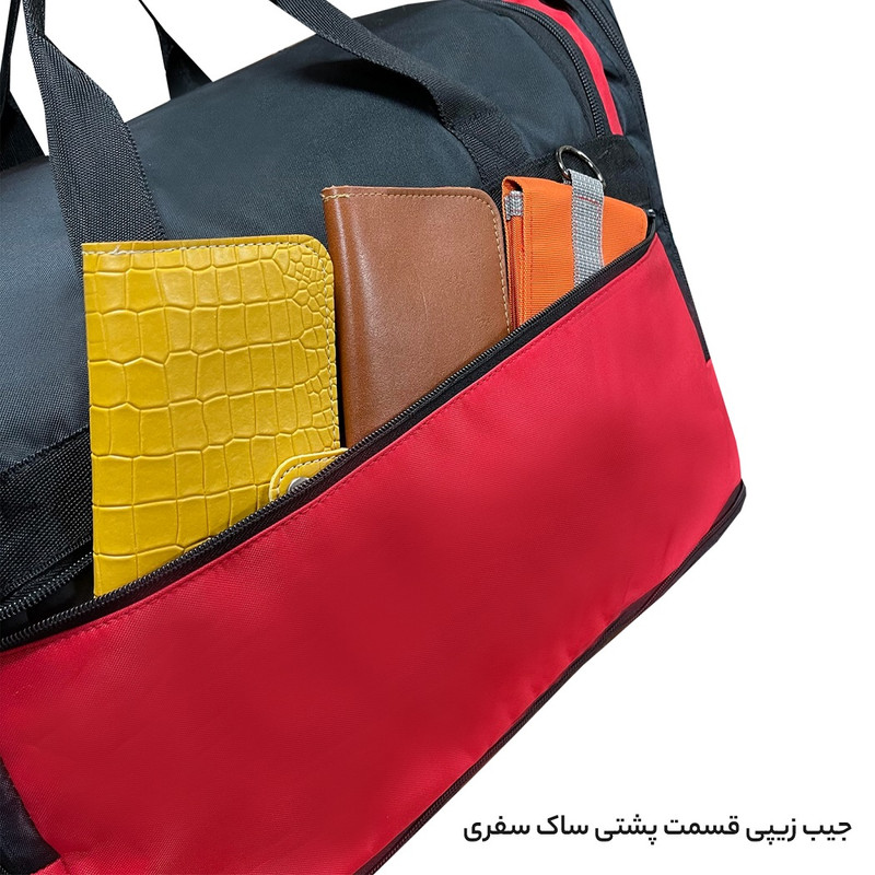 دارای یک بند بلند قابل تنظیم و قابل جدا شدن جهت حمل به صورت دوشی دارای ابر و آستر داخلی در تمامی قسمت های ساک دارای 5 عدد پایه استوک در قسمت کف ساک سفری جهت افزایش ایستایی و مقاومت ساک دارای جنس بدنه ضد آب و قابل شست و شو