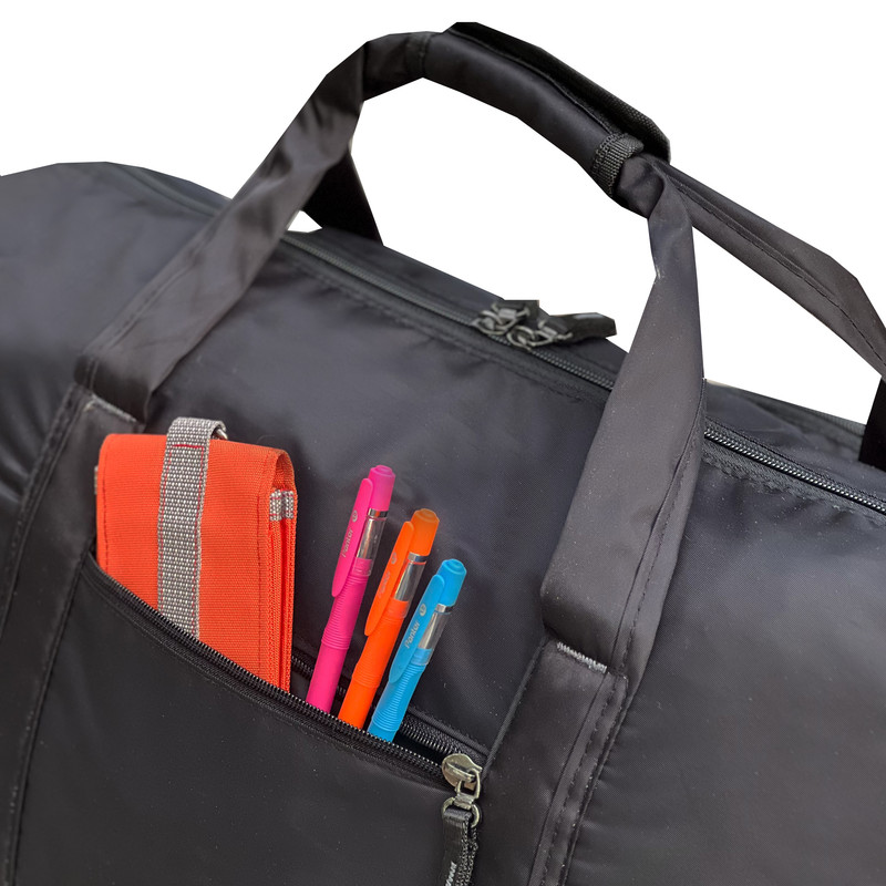 دارای دو دسته از جنس بدنه همراه با چسب دوبل دسته جهت حمل آسان تر به صورت دستی دارای یک بند بلند دوشی قابل تنظیم جهت حمل به صورت دوشی