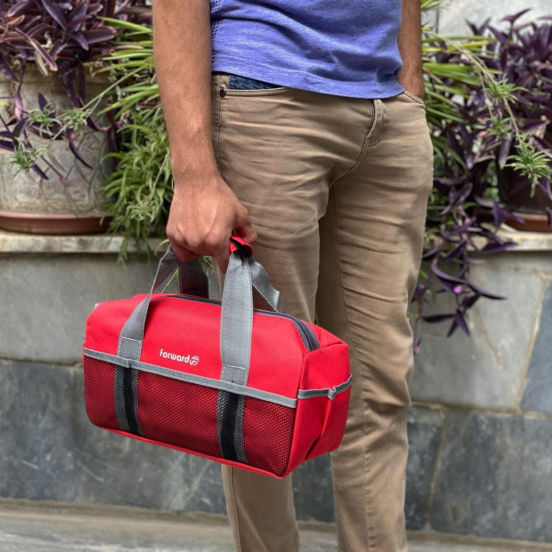 دارای یک محفظه اصلی جهت قرار دادن ابزار اصلی دارای دو جیب در دو طرف کیف ابزار جهت قرار دادن وسایل کوچک دارای 3 محفظه توری در قسمت جلویی کیف ابزار دارای ابر و آستر در سرتاسر کیف ابزار دارای زیپ روان دارای دسته چسبی جهت حمل اسان تر