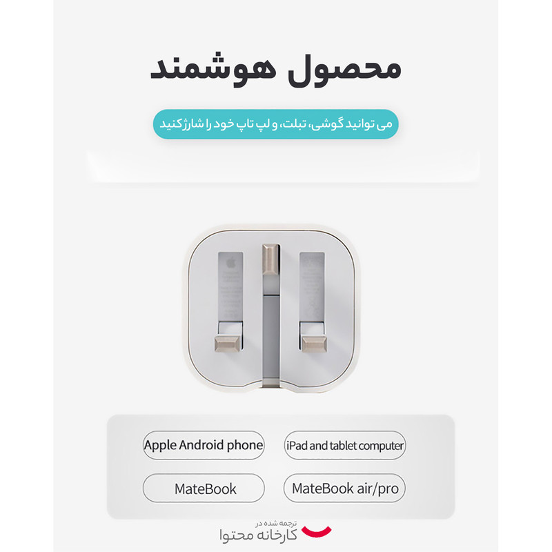 توان خروجی در این مدل از شارژرهای دیواری «اپل» 20 وات است. همچنین جریان خروجی در آن 3.0 آمپر شدت دارد و برای شارژ باتری انواع گوشیهای موبایل، دوربین دیجیتال و دیگر لوازم از این قبیل مناسب خواهد بود. در این شارژر دیواری یک سه شاخه برق قرار گرفته که از آن برای اتصال شارژر به پریز برق استفاده میشود. البته توجه داشته باشید که این سه شاخه با پریز برق در ایران سازگاری ندارد و شما برای استفاده از آن باید از یک تبدیل 3 به 2 استفاده کنید. پس از استفاده از این تبدیل، شما میتوانید شارژر را بهطور مستقیم به پریز برق متصل کرده و دستگاه مورد نظر خود را با کمک یک کابل USB به آن متصل کنید. ولتاژ ورودی در این شارژر 220 تا 240 ولت و ولتاژ خروجی در آن 20 ولت است. وزن این شارژر 80 گرم بوده و ابعاد آن بهصورتی طراحی شده که بهسادگی قابل حمل باشد.