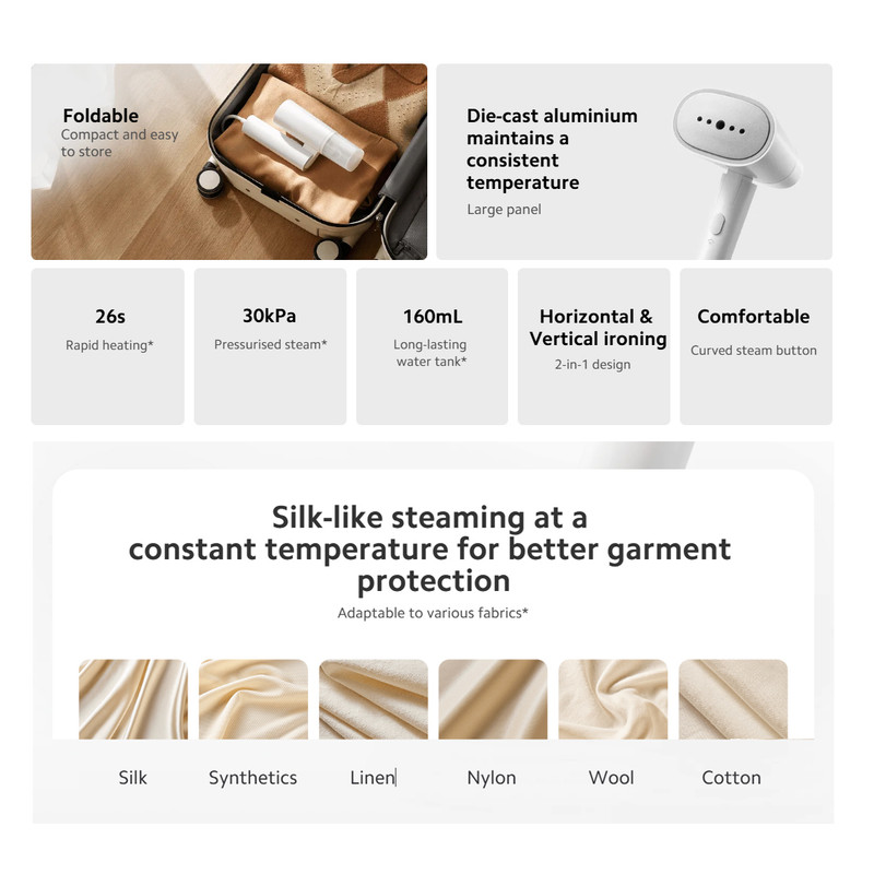 امکانات و قابلیتها: قابلت اتو زدن در حالت افقی و عمودی دمای بخار : ۱۲۰ درجه سانتیگراد ظرفیت مخزن آب: ۱۶۰ میلی لیتر عملکرد سریع ۳۰ ثانیه ای بدون نیاز به انتظار طولانی جهت تولید بخار از بین بردن باکتری ها در حین صاف کردن چین و چروک حمل آسان در یک سفر کاری یا توریستی