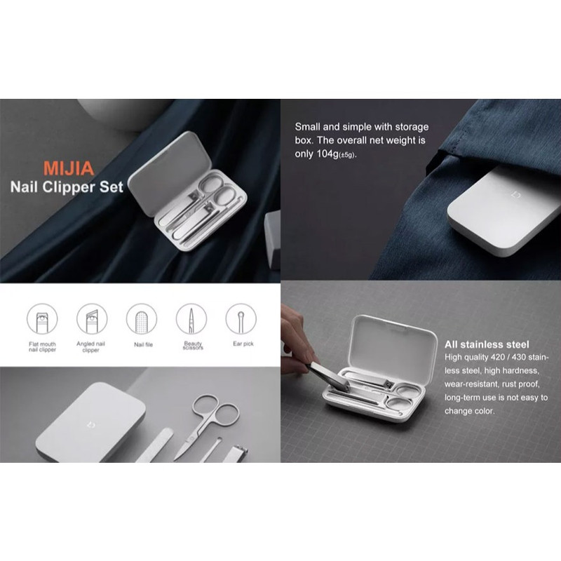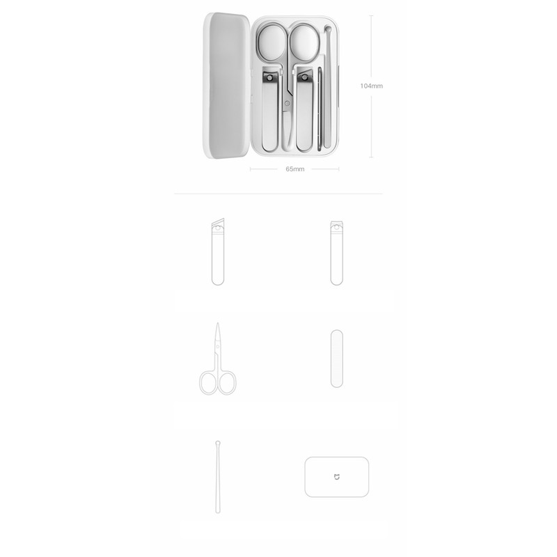 در نگاه اول، یک باکس 65×104×17.3 میلی متری با طراحی مینیمالیستی میبینیم که پس از باز کردن آن 7 ابزار کاربردی برای اصلاح ناخن وجود دارد. با توجه به وزن 104 گرمی و ساختار کوچکی که دارد، یک گزینه مناسب برای حمل روزانه داخل کیف به حساب میآید. خوشبختانه کلیه ابزارهای داخل باکس از استیل ضد زنگ 420/430 ساخته شده اند که دارای استحکام بالا بوده و در استفاده طولانی مدت به هیچ عنوان تغییر رنگ نمیدهد.شاید برایتان جالب باشد اگر بدانید این چند قلم کاربردی، 84 فرآیند پیچیده اصلاح ناخن را انجام میدهد.این ست اصلاح بهداشتی (Xiaomi Mijia Nail Clippers Set) از 5 قلم کاربردی شامل قیچی کوچک، دو ناخنگیر، سوهان و یک قاشق گوش است که همگی جزو پرطرفدارترین و ضروری ابزار آلات بهداشتی هستند. همانطور که اشاره شده، این ست شامل دو ناخنگیر با لبههای صاف و زاویه دار است که برای اصلاح ناخن کاربرد دارد. بافت سوهان ناخن نیز بافتی استاندارد برای جلای ناخن و منحل کردن گوشههای تیز آن دارد.قیچی نیز عمدتا برای اصلاح موهای ابرو و قاشق گوش نیزبرای تمیز کردن مجرای گوش مفید خواهد بود.