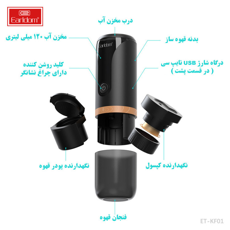 اقلام همراه : ظرف قرارگیری کپسول - براکت قهوه - تمپر - پیمانه - پرس - کابل شارژ تایپ سی - کیف